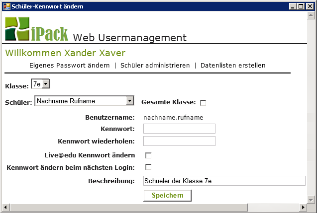 | Wenn ein Schüler sein Kennwort vergessen hat, kann ein Lehrer eines einstellen. |