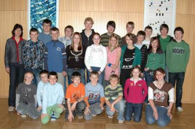 Besonders erfolgreich das Team der 6A mit der Schulsiegerin Alexandra Fehringer (vorne, Mitte) mit Mathematikprofessor Mag. Arno Dengg