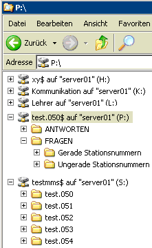 Der Lehrer meldet sich an der Lehrerstation an und kopiert einen Ordner mit seinen Fragen nach P:\FRAGEN\. |