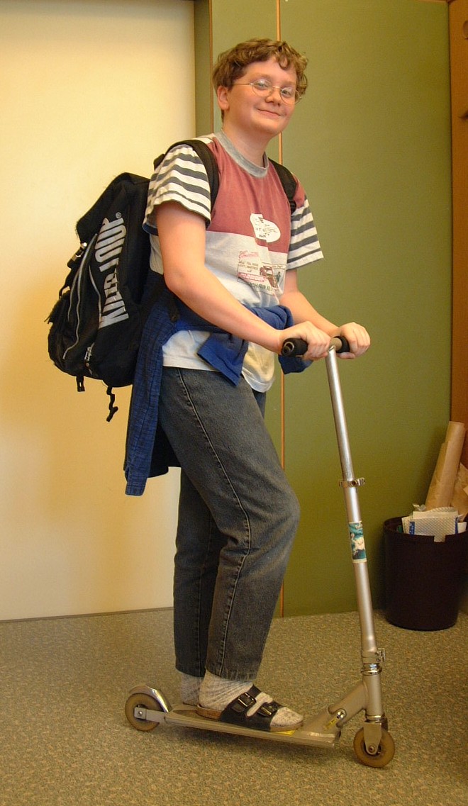 Unser Schüler Dominik Duhs aus der 2C-Klasse fährt täglich - bei Sonne, Regen, Sturm und Regen - mit seinem Scooter zur Schule und "garagiert" diesen in der Kanzlei.