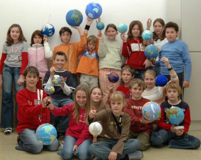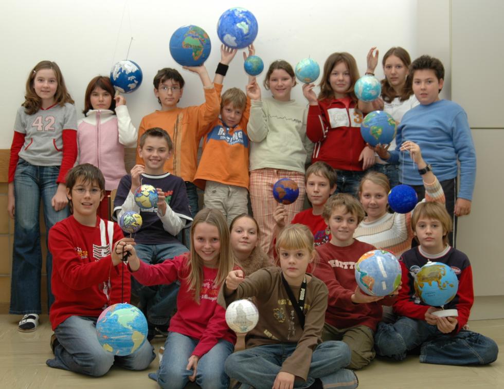 SchülerInnen der 1D mit den 'persönlichen' Erdkugeln