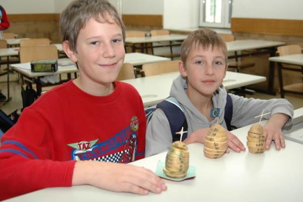 Scharwitzl Christoph (li) und Wilfing Mario (re) mit ihren Kartoffel-Höhenschichtenmodellen